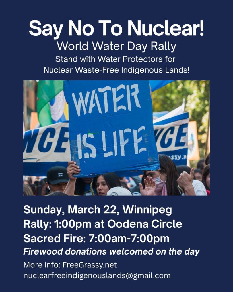 On World Water Day 2026, Grassy Narrows Solidarity invites all water protectors to a rally at The Forks in Winnipeg. Say No to Nuclear!