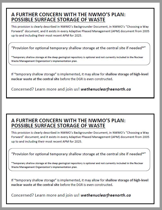 Here is your one-stop source of educational and awareness materials, to let people know that there are plans to potentially bury and abandon nuclear fuel waste deep in the rock of Northwestern Ontario.